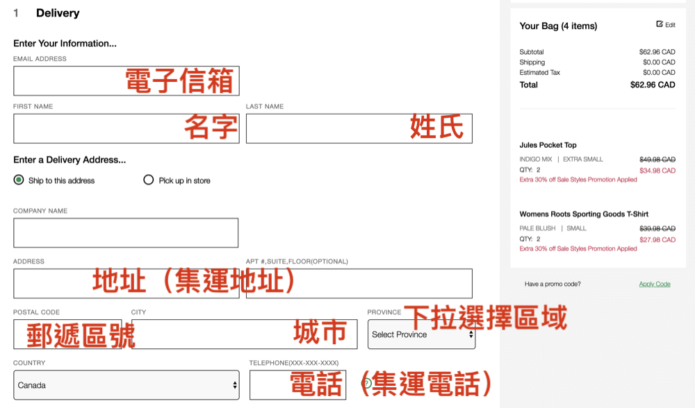 Roots 網購步驟