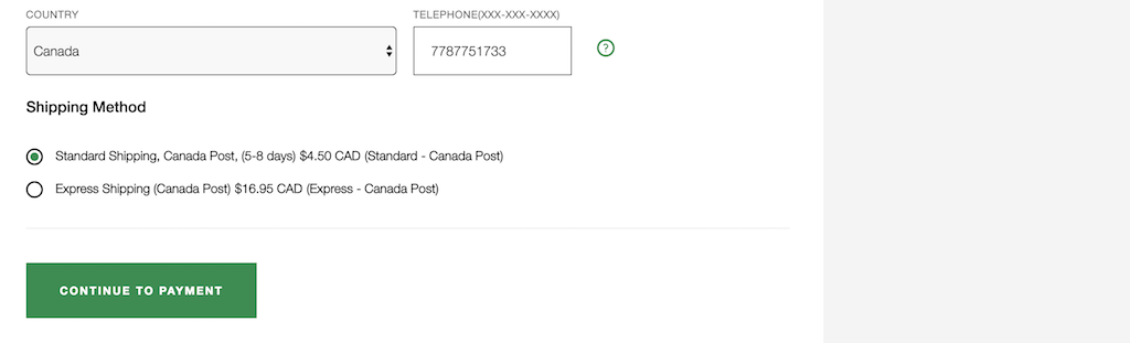 ↓ 輸入完信用卡資料後,點選下方綠色框的 CONTINUE TO REVIEW 確認訂單,這時候你會在右側看到稅金,是的!加拿大都是需要稅金的歐!!!但不管怎樣都便宜很多就是惹!!確認無誤後,點選下方綠色框的 PLACE AN ORDER NOW 便完成下單。