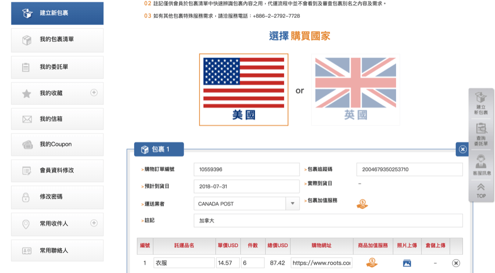 溫馨提醒:收到 Roots 的寄貨通知記得登入加拿大集運物流 Shipgo 的後台,輸入貨件資料喔!