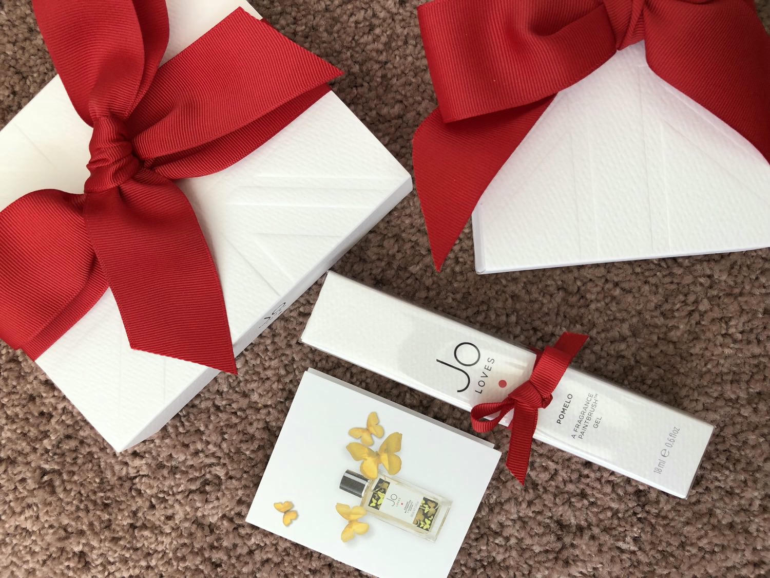 白色硬盒及印有英國國旗的外盒加上熱情的紅色蝴蝶結,我把他解讀成一份來自英國的愛與 Jo Loves 互相呼應,不管是外盒或是香水瓶身都可以見到 Made in England 英國製的字樣。